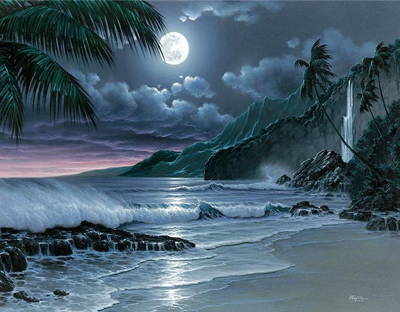 Ночной пляж живопись