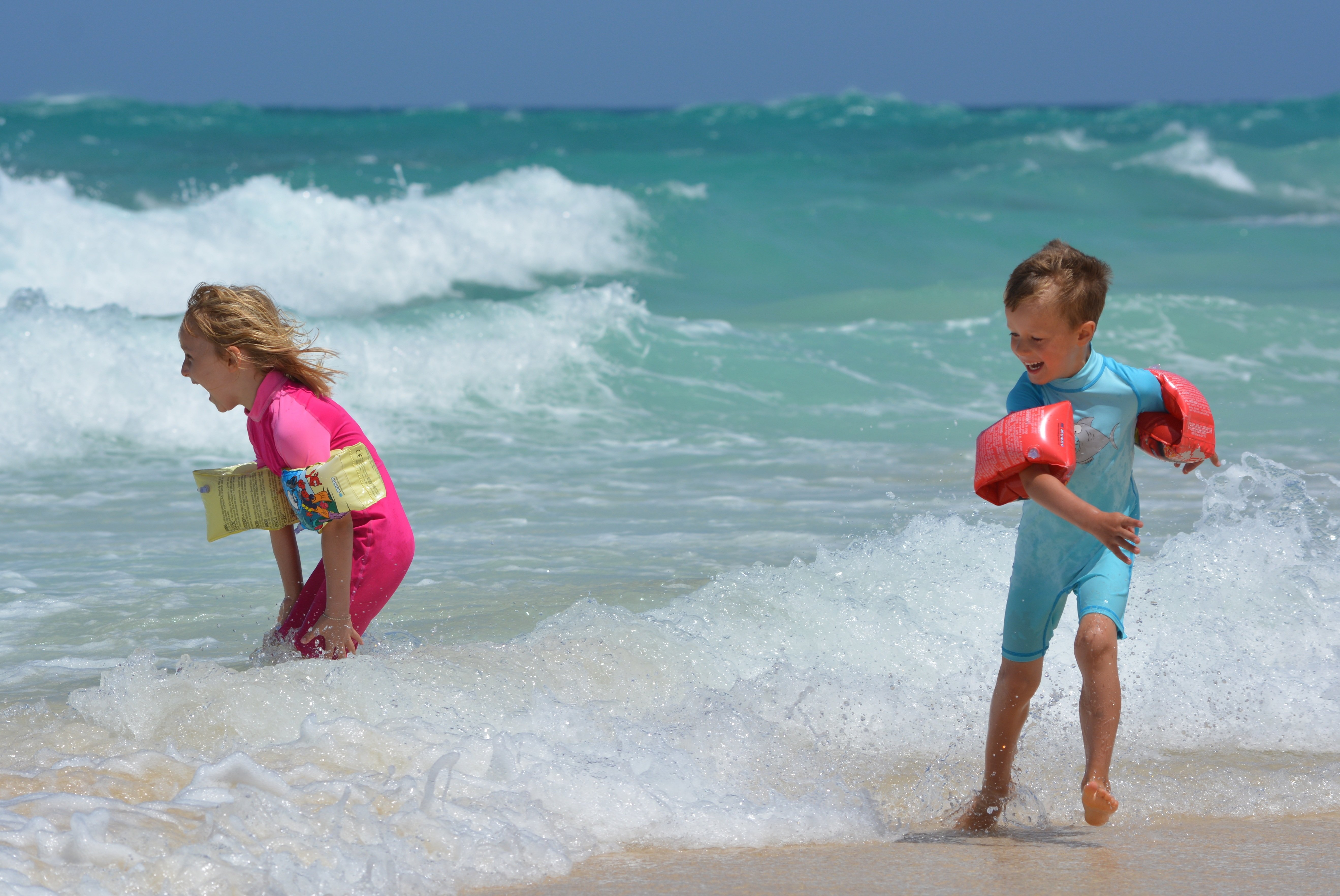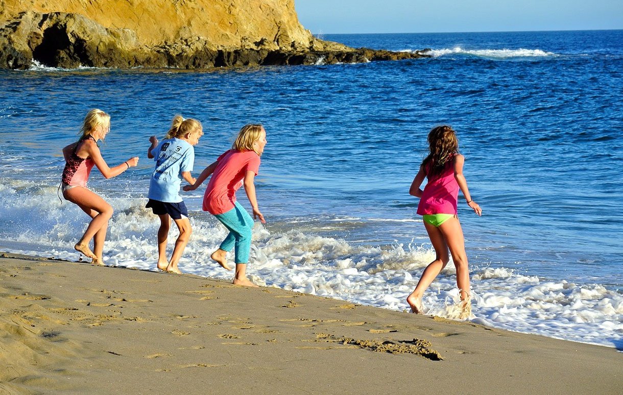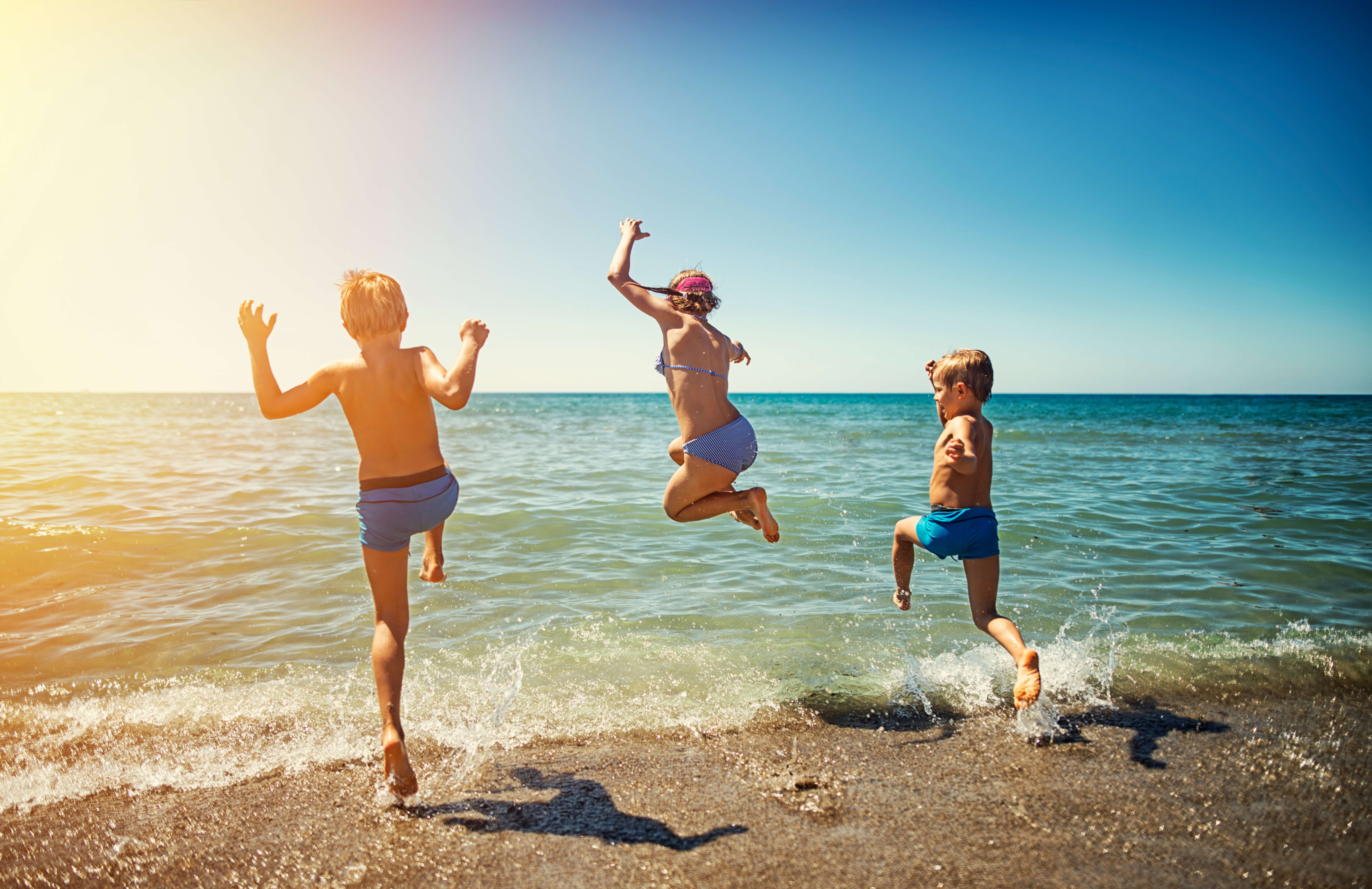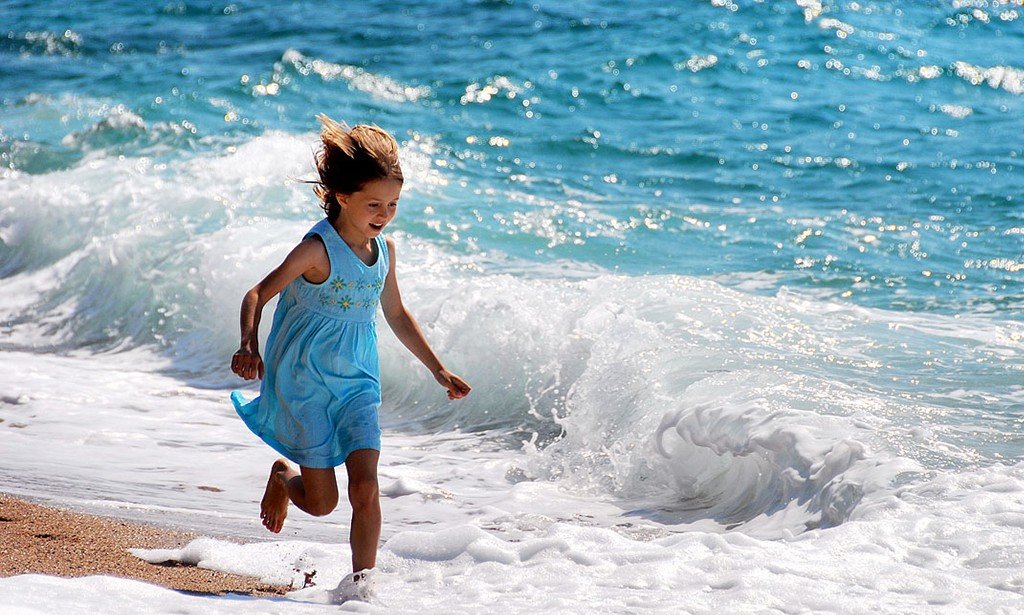 ![Дети бегут в море]()