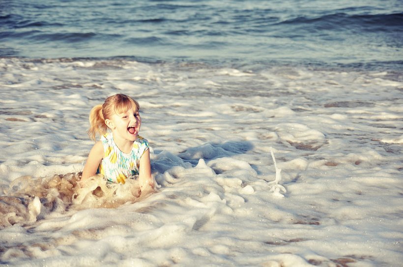 Радостный ребенок на море