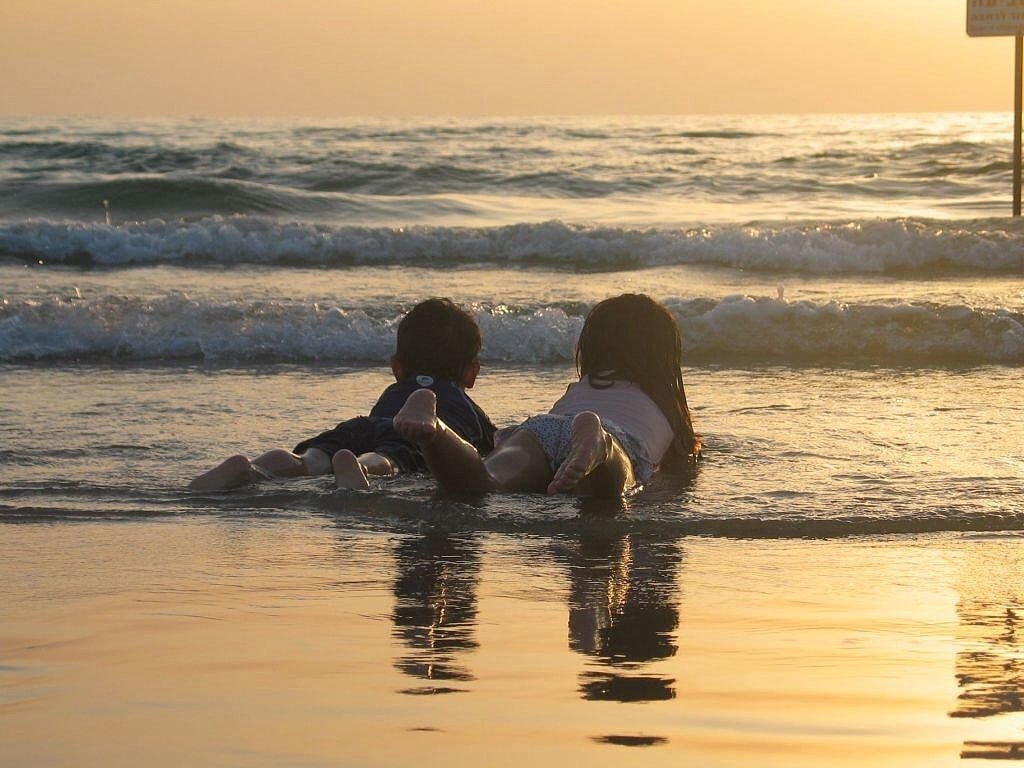 ![Дети на берегу океана]()