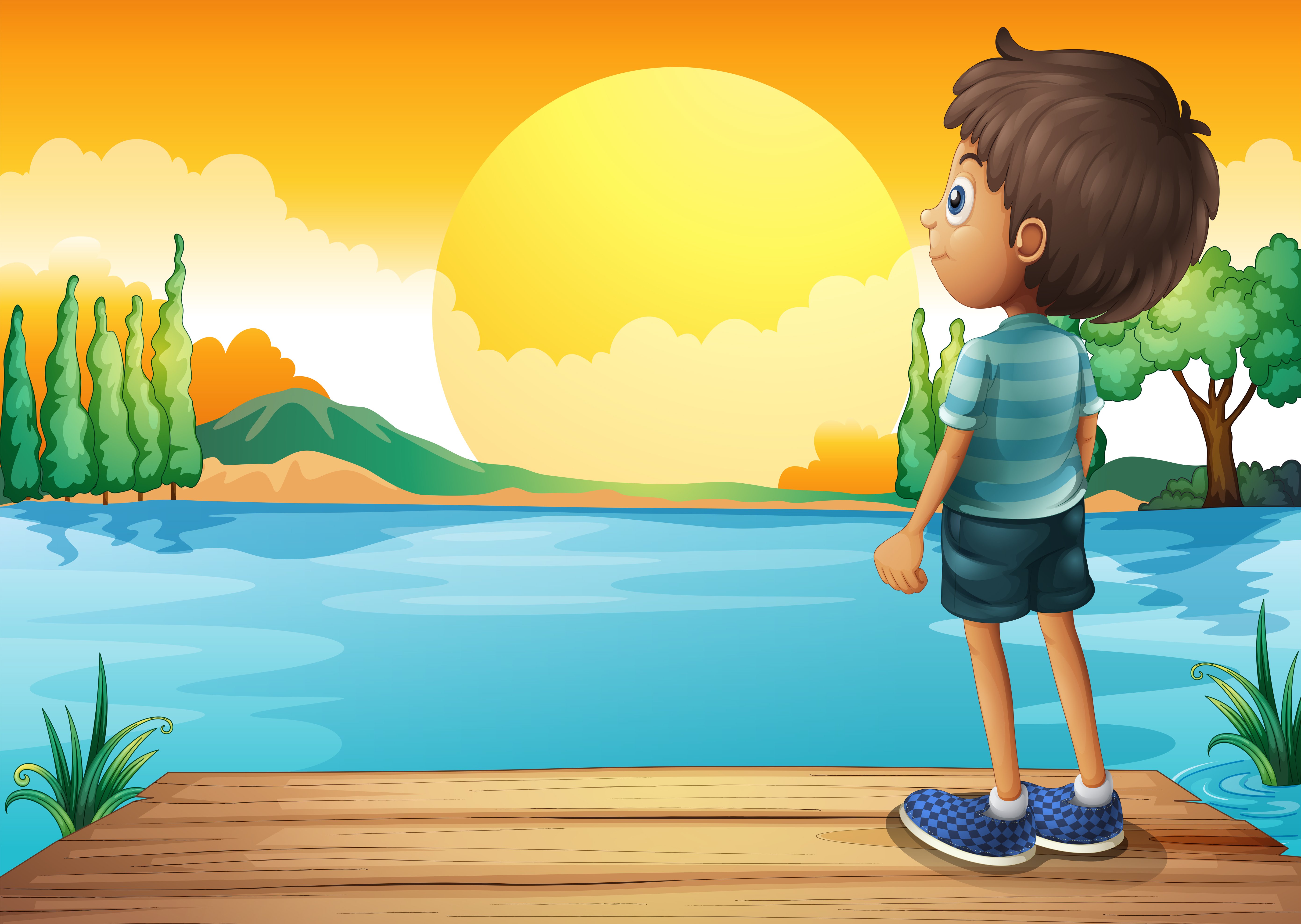 ![Иллюстрация мальчик сидит на берегу]()