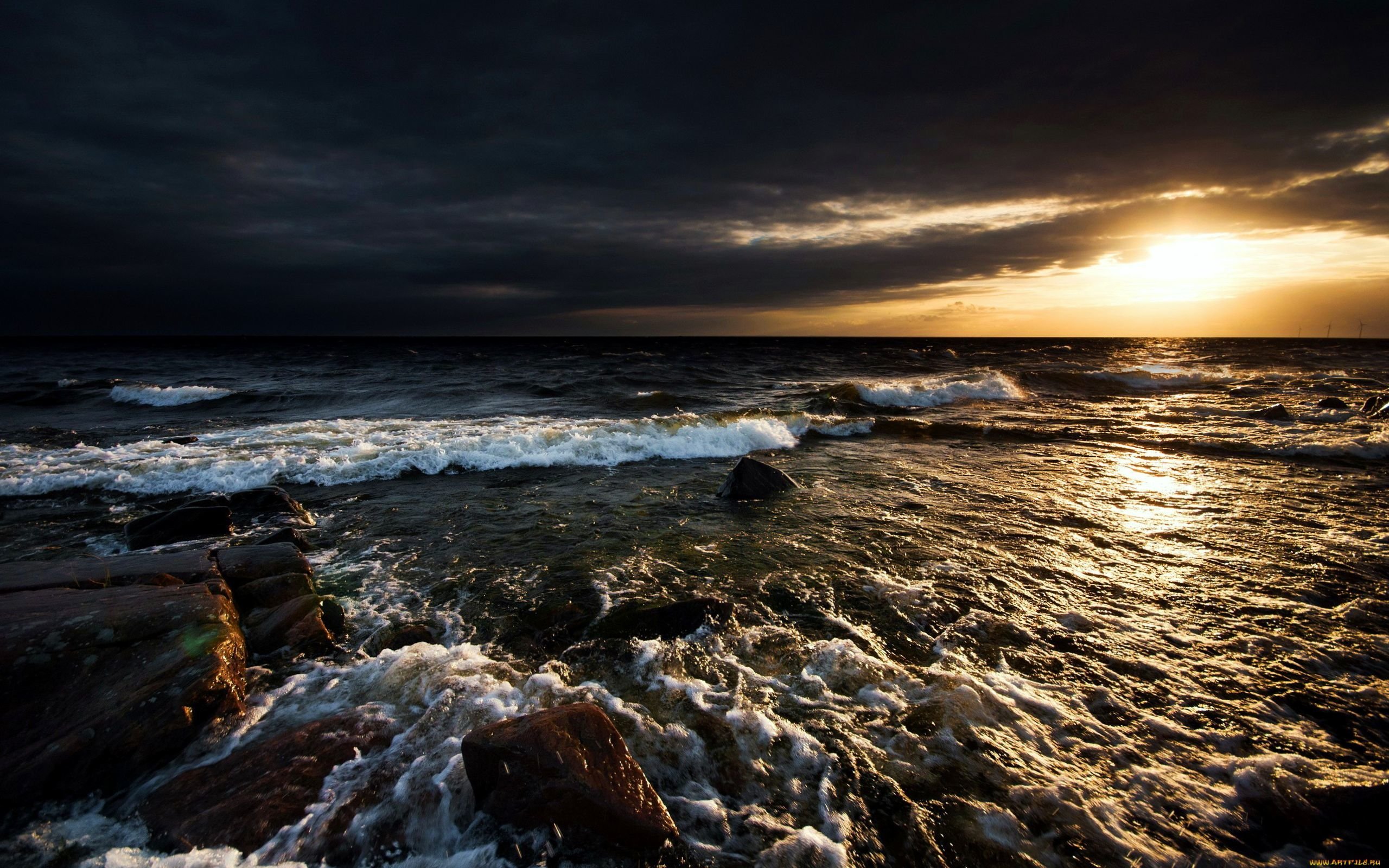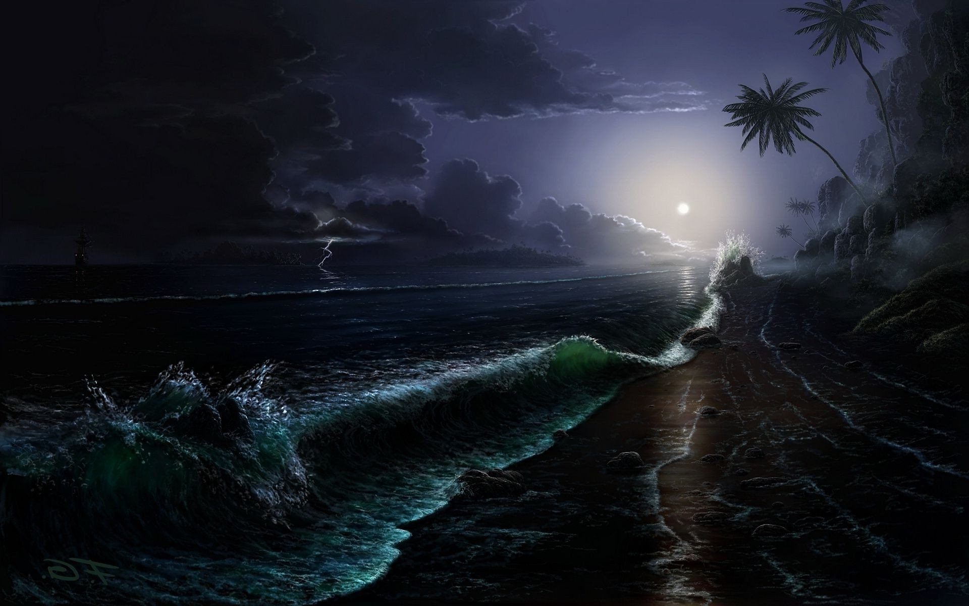 Обои на рабочий стол море ночью