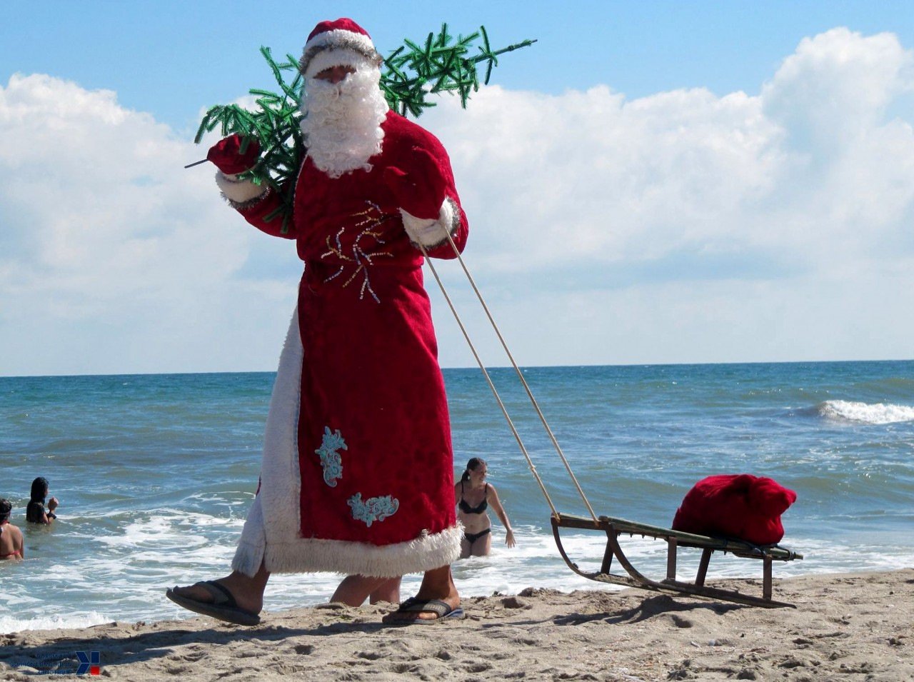 Дед Мороз на пляже