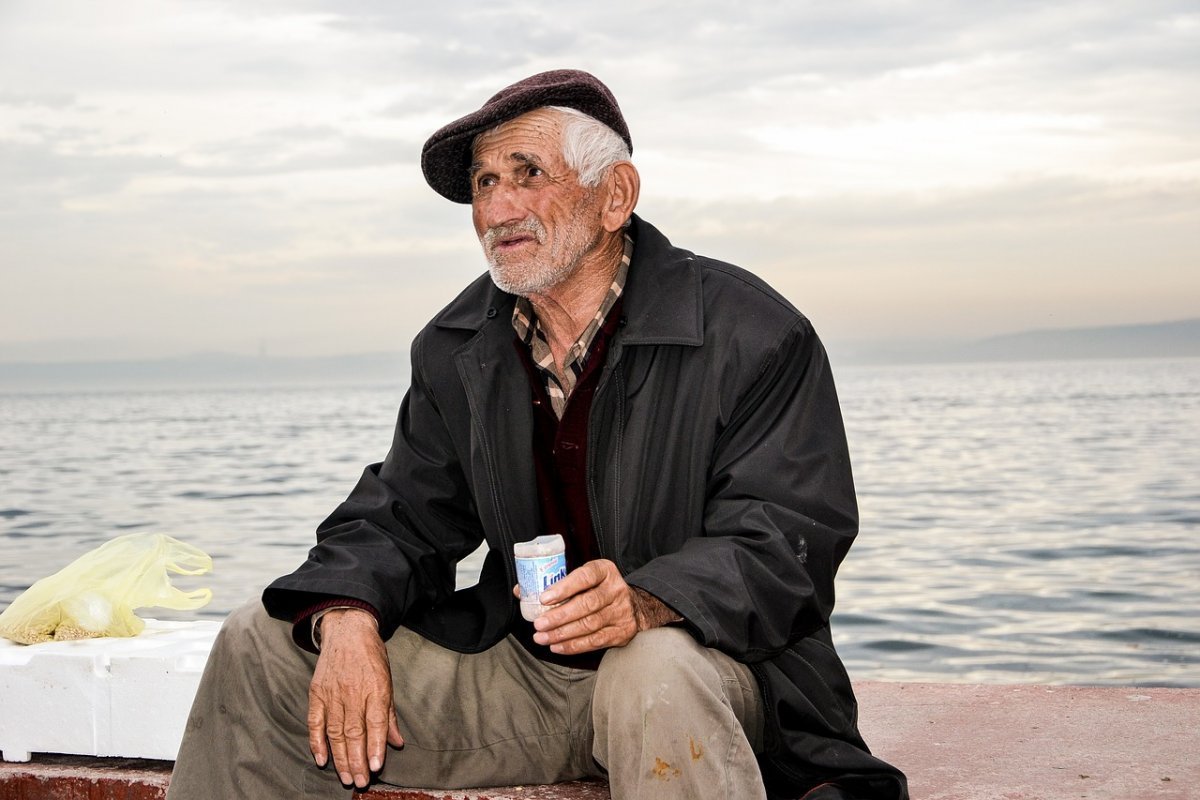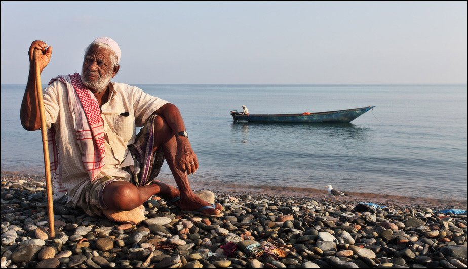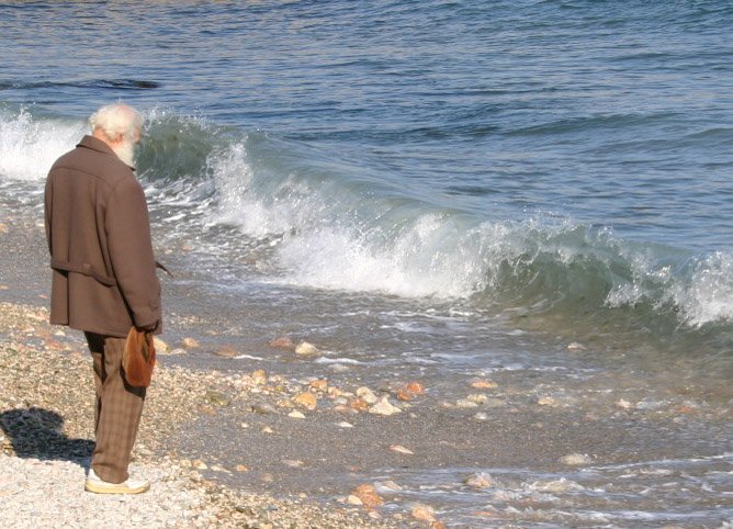 Одинокий старик на берегу моря