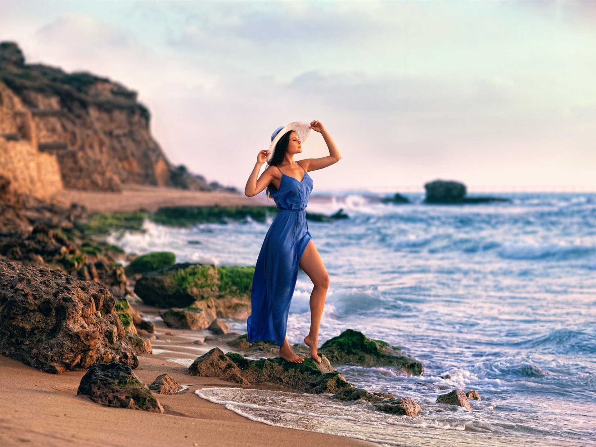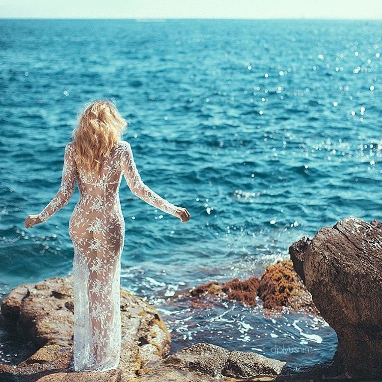 ![Девушка в платье море волны]()