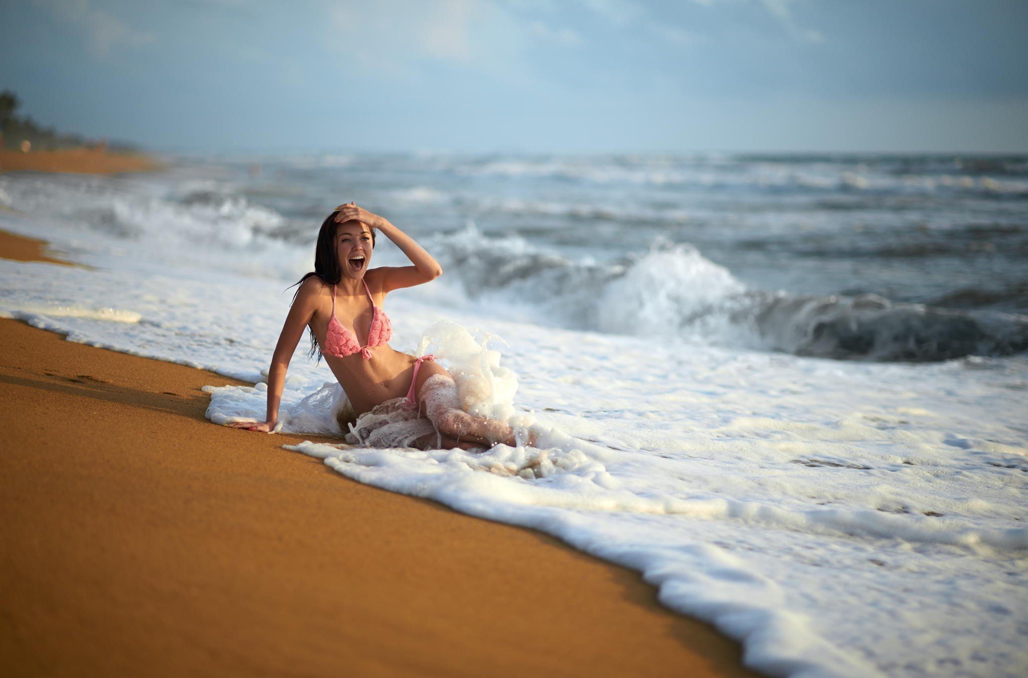 Девушка в платье море волны
