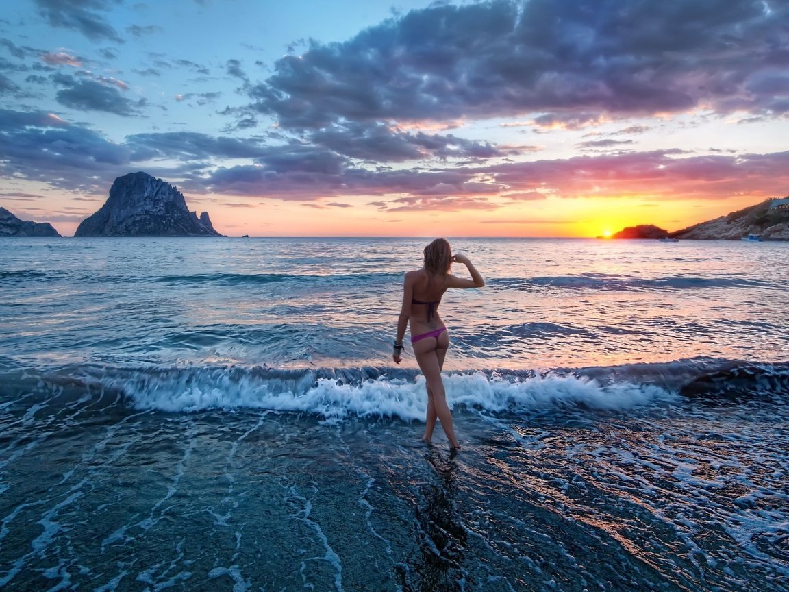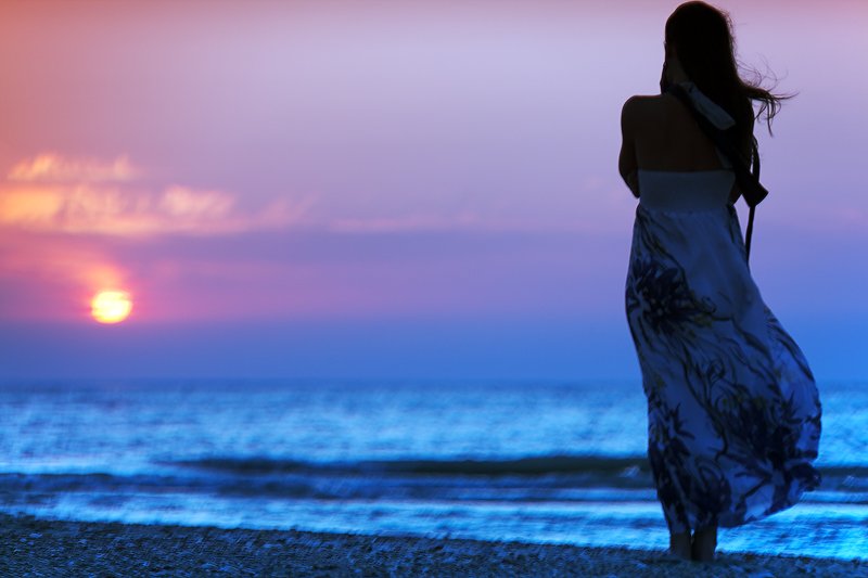 Девушка на закате у моря