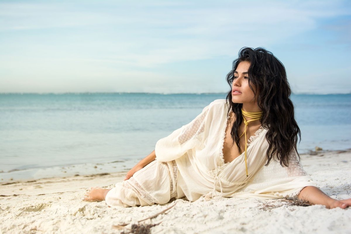 Брюнетка на море