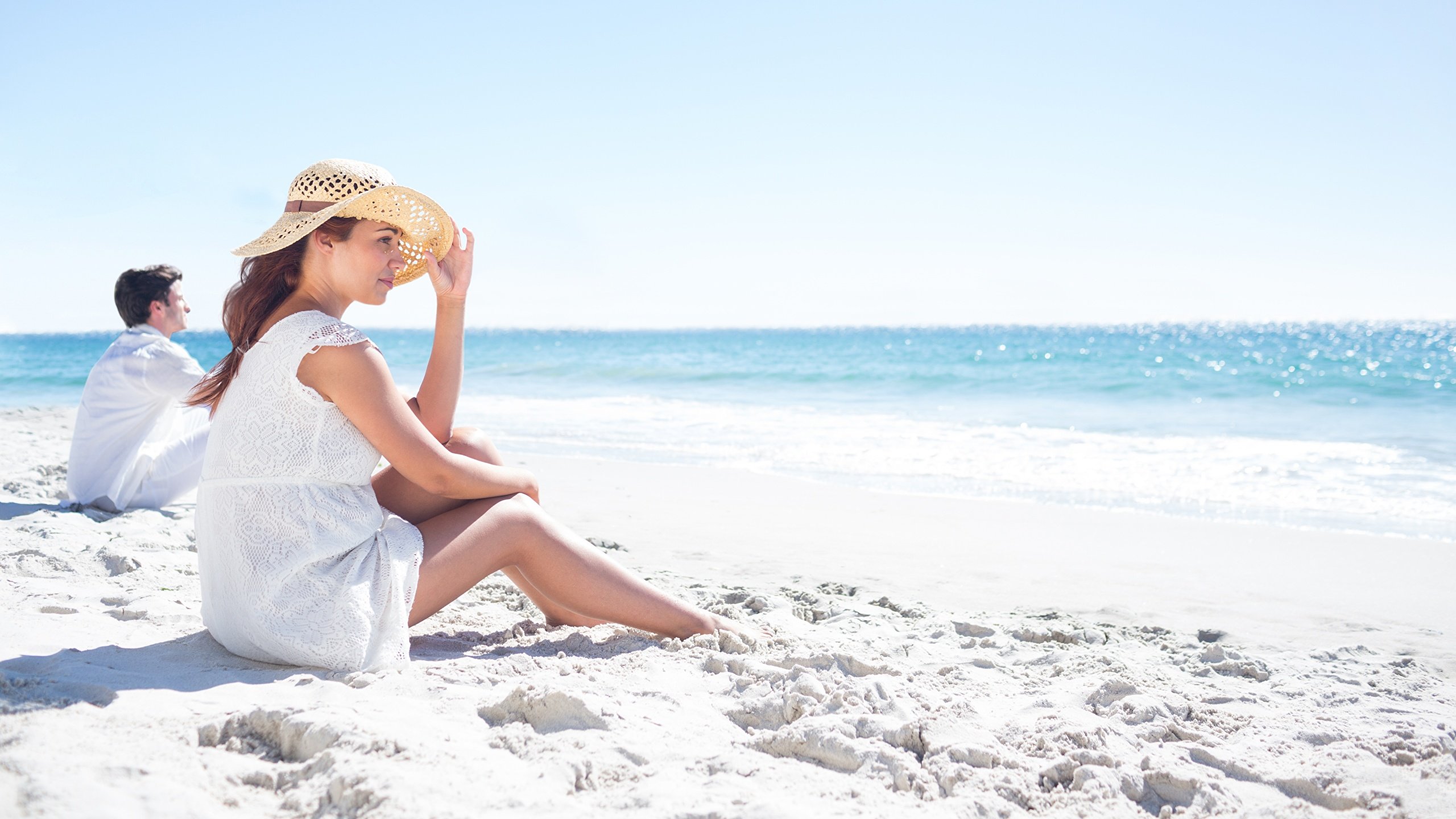 ![Девушка в белом платье на море]()