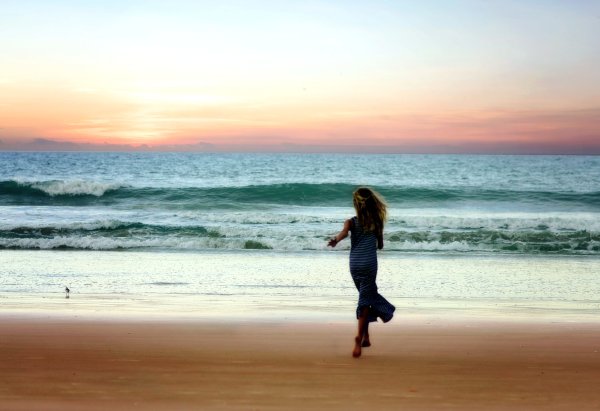 На фотографиях изображены прекрасные девушки, бегущие по песчаному пляжу вдоль бескрайнего моря. Взгляд устремлен вдаль, волосы развеваются на ветру, а на лицах играет улыбка свободы и радости. Фоном служат лазурные воды океана и небо, окрашенное в разные оттенки голубого. Эти картинки символизируют жизнерадостность, активный образ жизни и стремление к свободе, приносящее чувство полета и вдохновения.