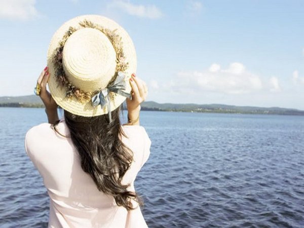 Женщина в шляпе на море