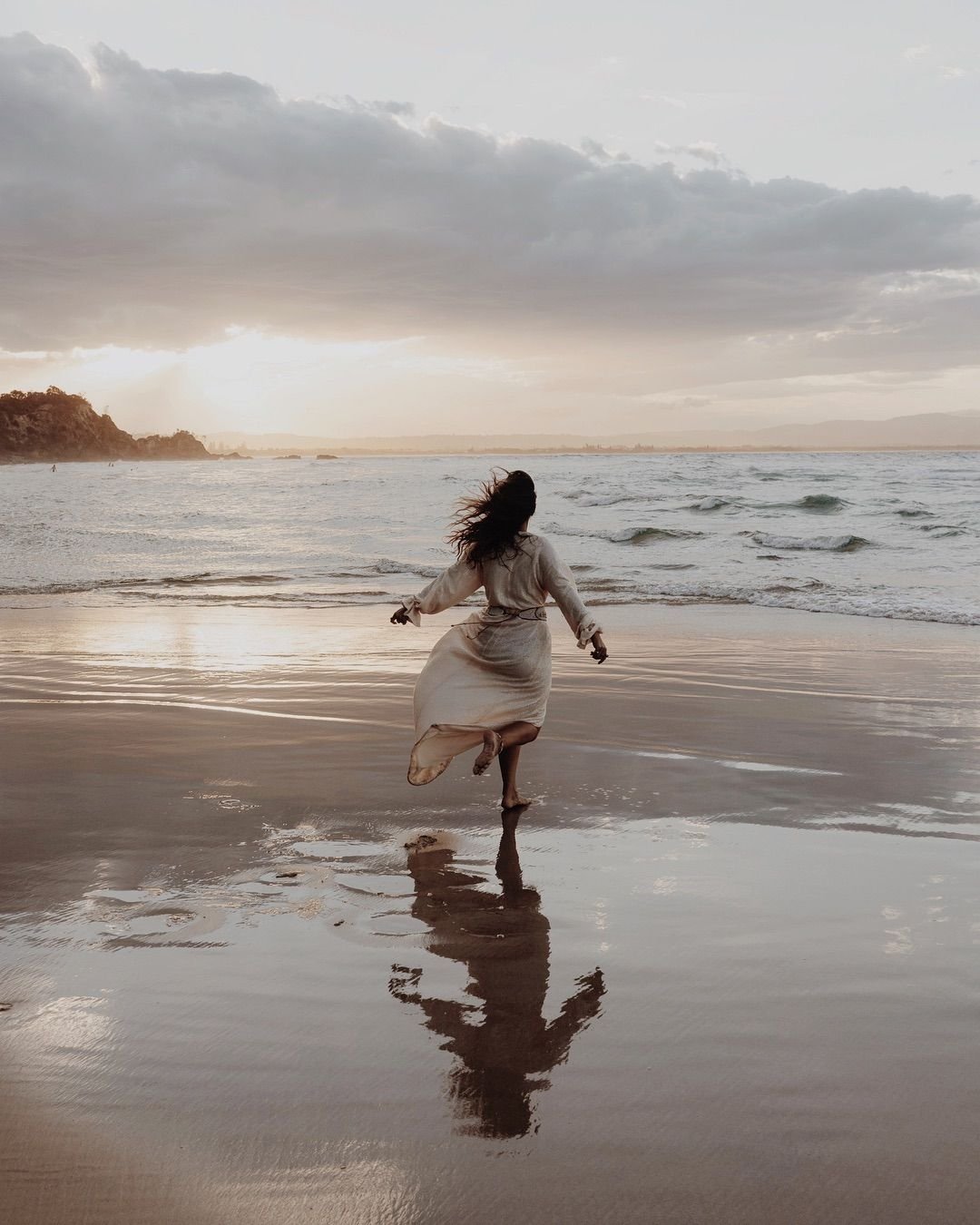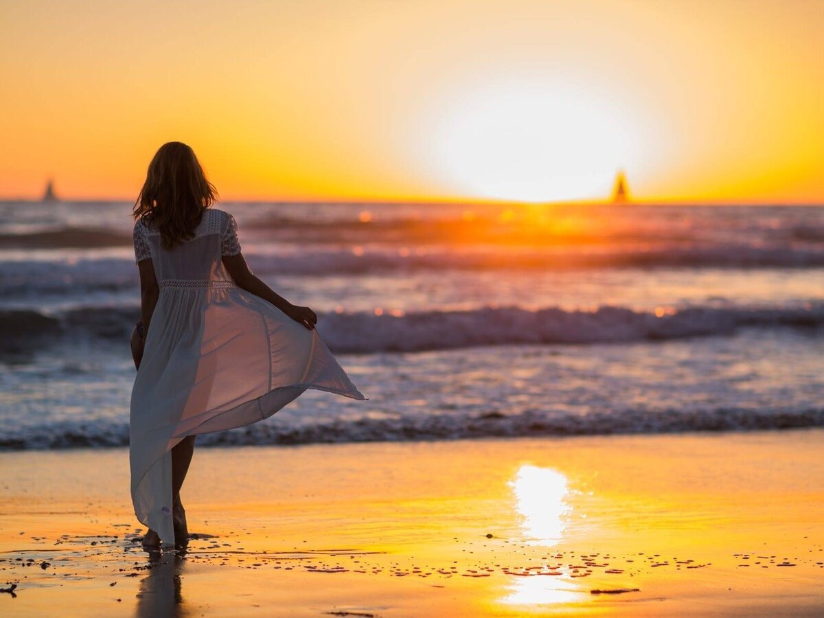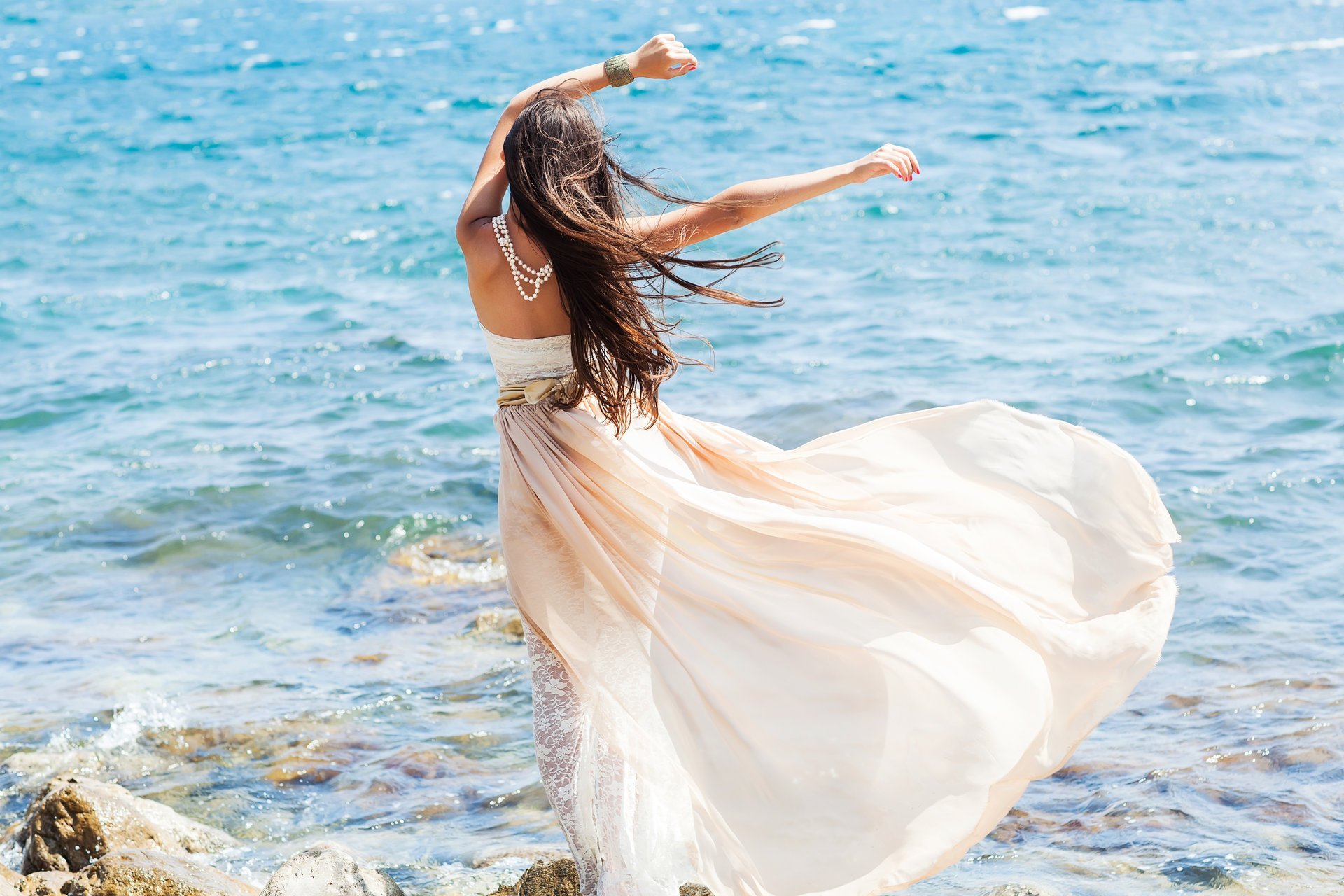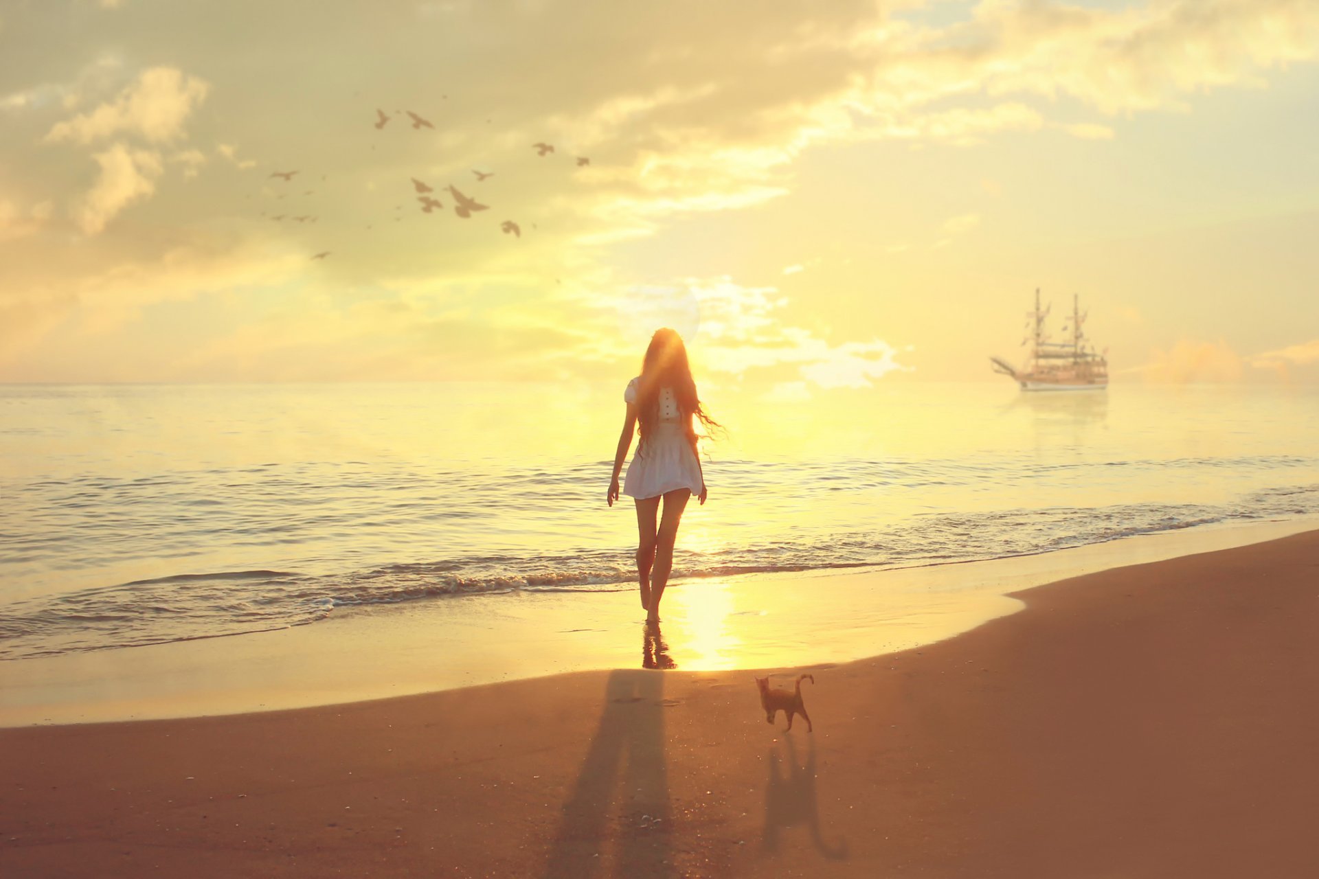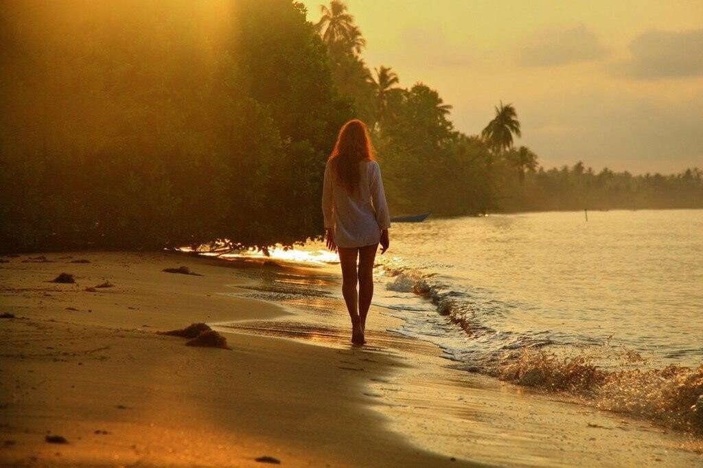На фотографии изображена прекрасная девушка, которая грациозно идет по берегу моря. Ее волосы летят на ветру, а на заднем плане виднеется бескрайнее голубое море и небо. Взгляд девушки устремлен вдаль, словно она мечтает о чем-то важном и недостижимом. Атмосфера спокойствия и свободы, которая царит на этой картинке, словно приглашает зрителя отправиться в увлекательное путешествие за горизонт.