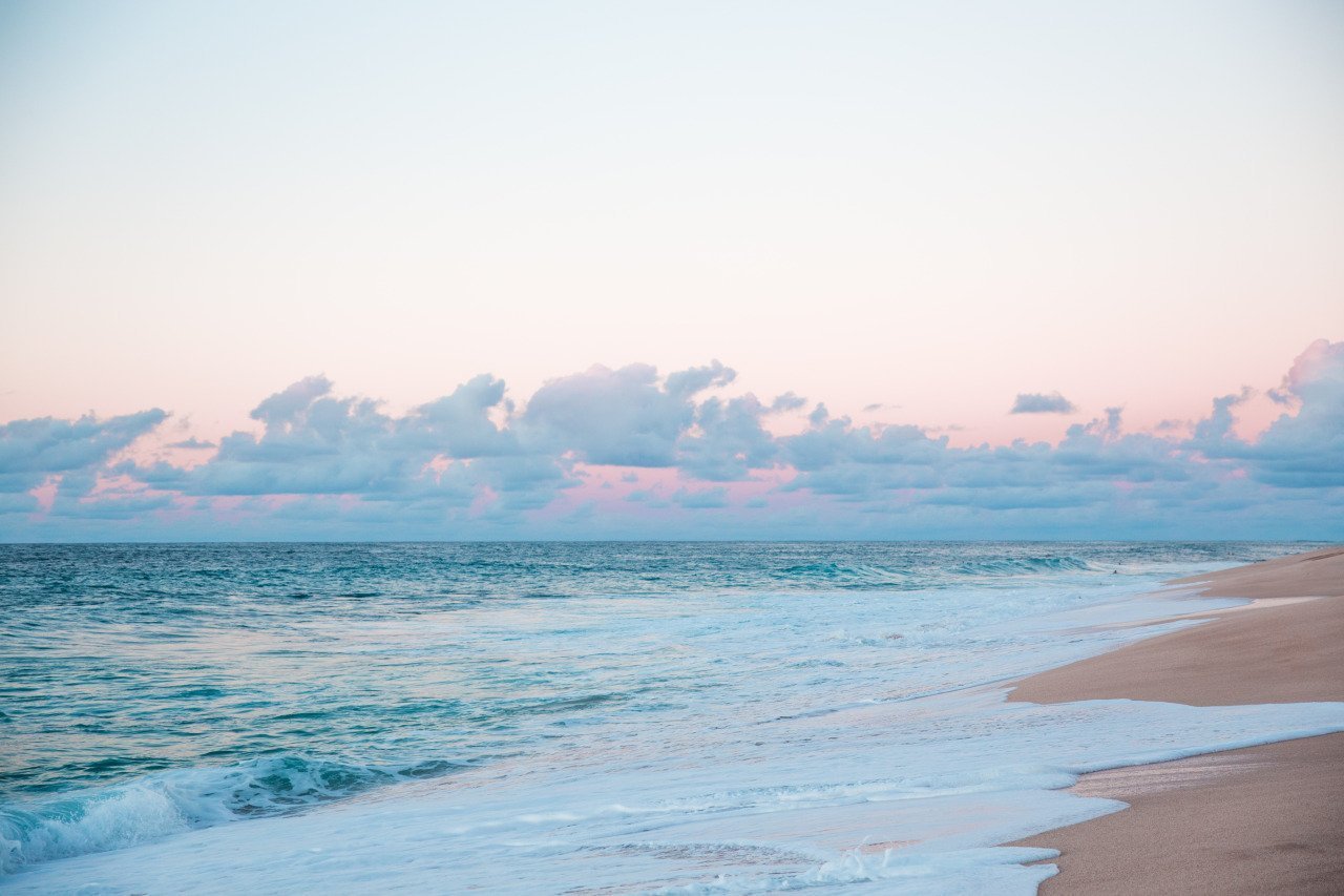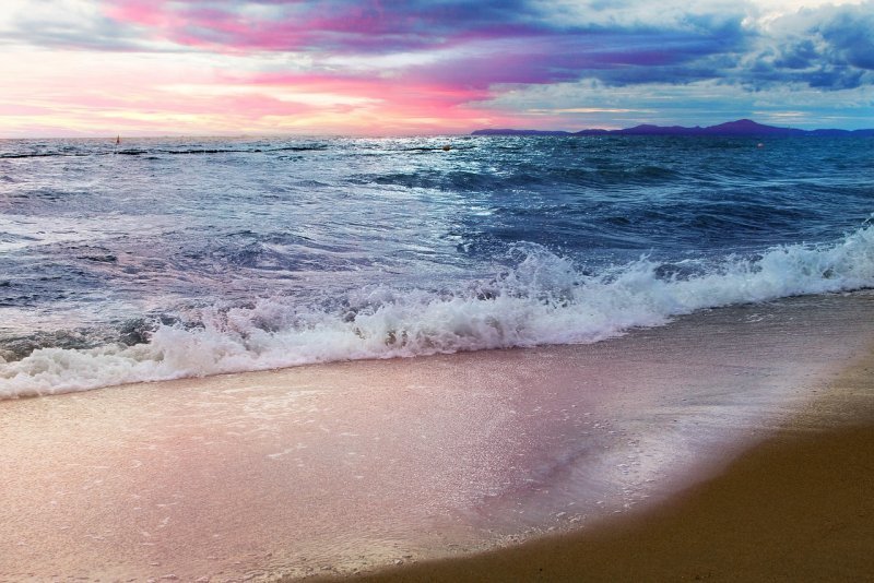 ![Розовые волны на море]()