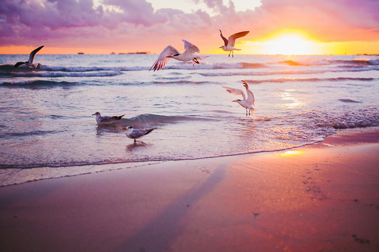 ![Чайки на берегу моря]()