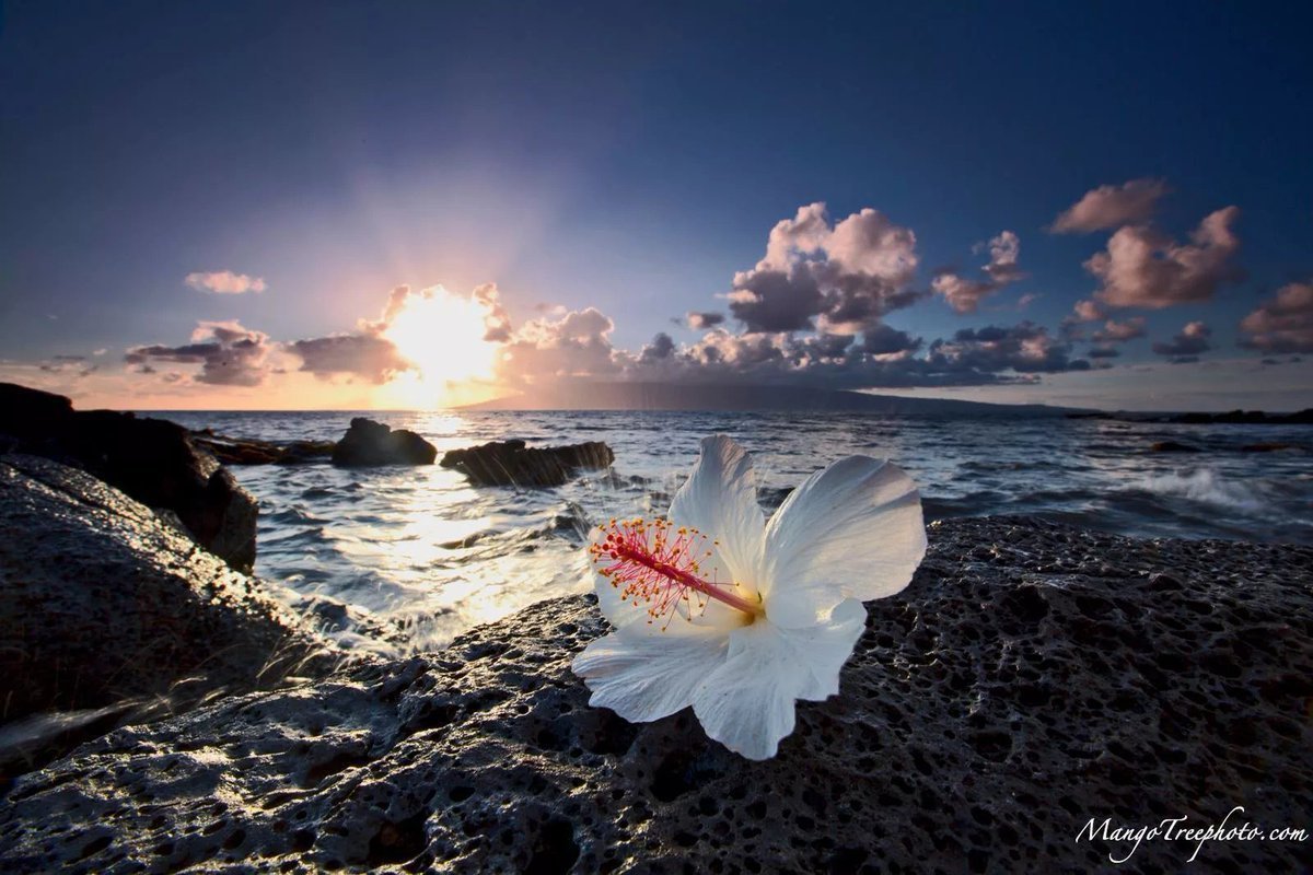 ![Красивые цветы на фоне моря]()