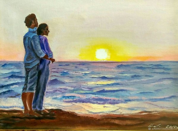 ![Пара на море живопись]()