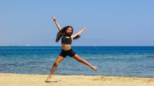 Танцующая девушка на берегу моря