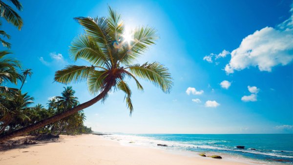 ![Море пляж пальмы солнце]()