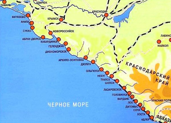 Сочи Анапа на карте Черноморского побережья