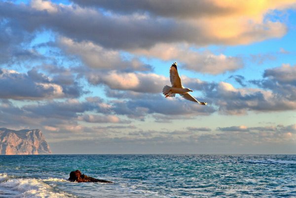 Полет птицы над морем
