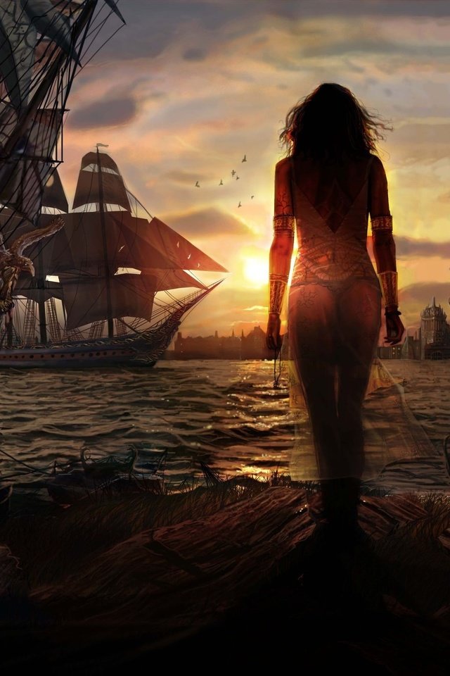 Девушка море корабль