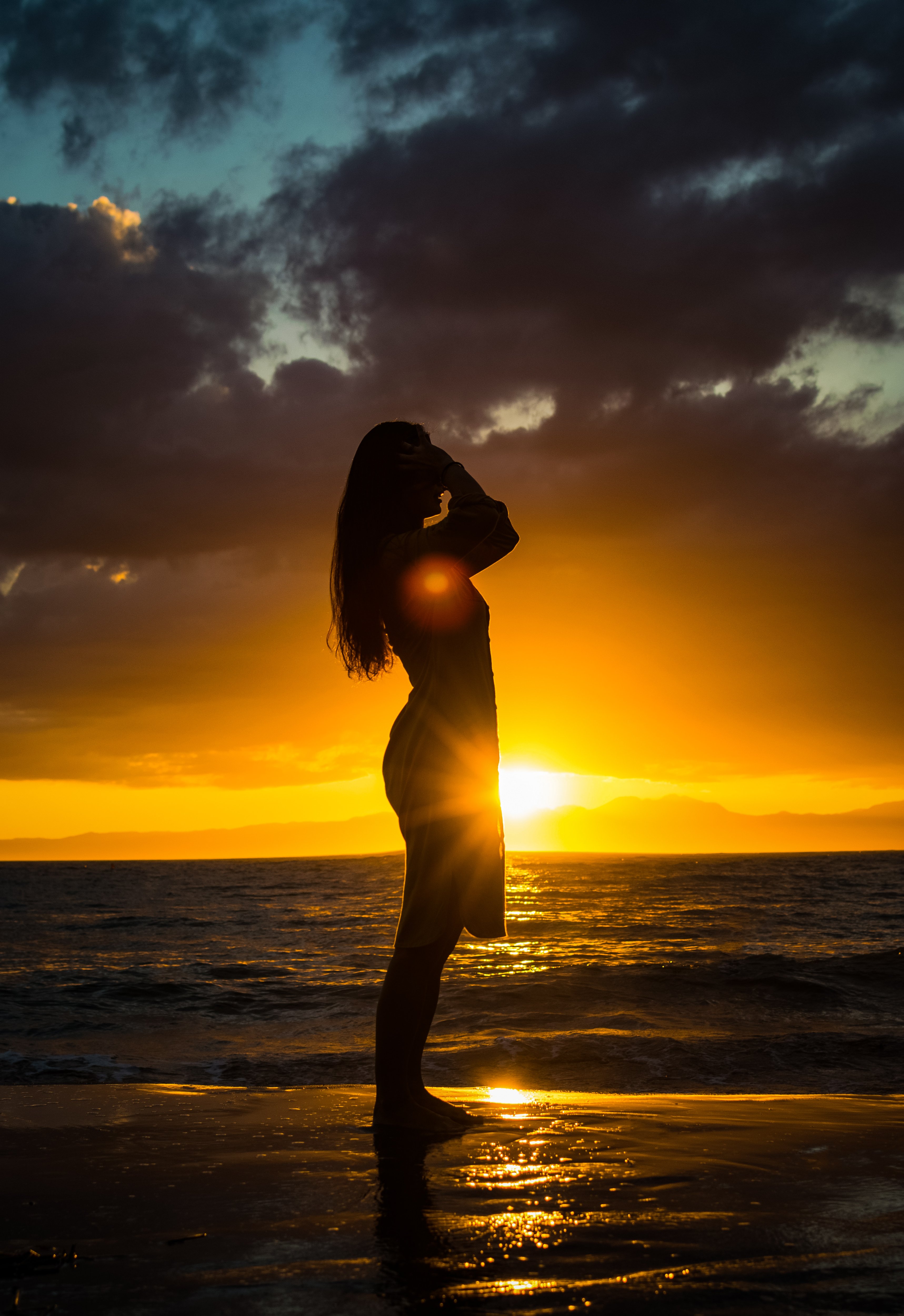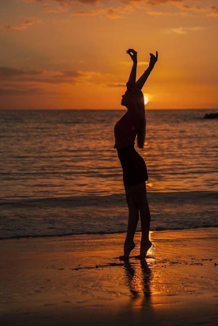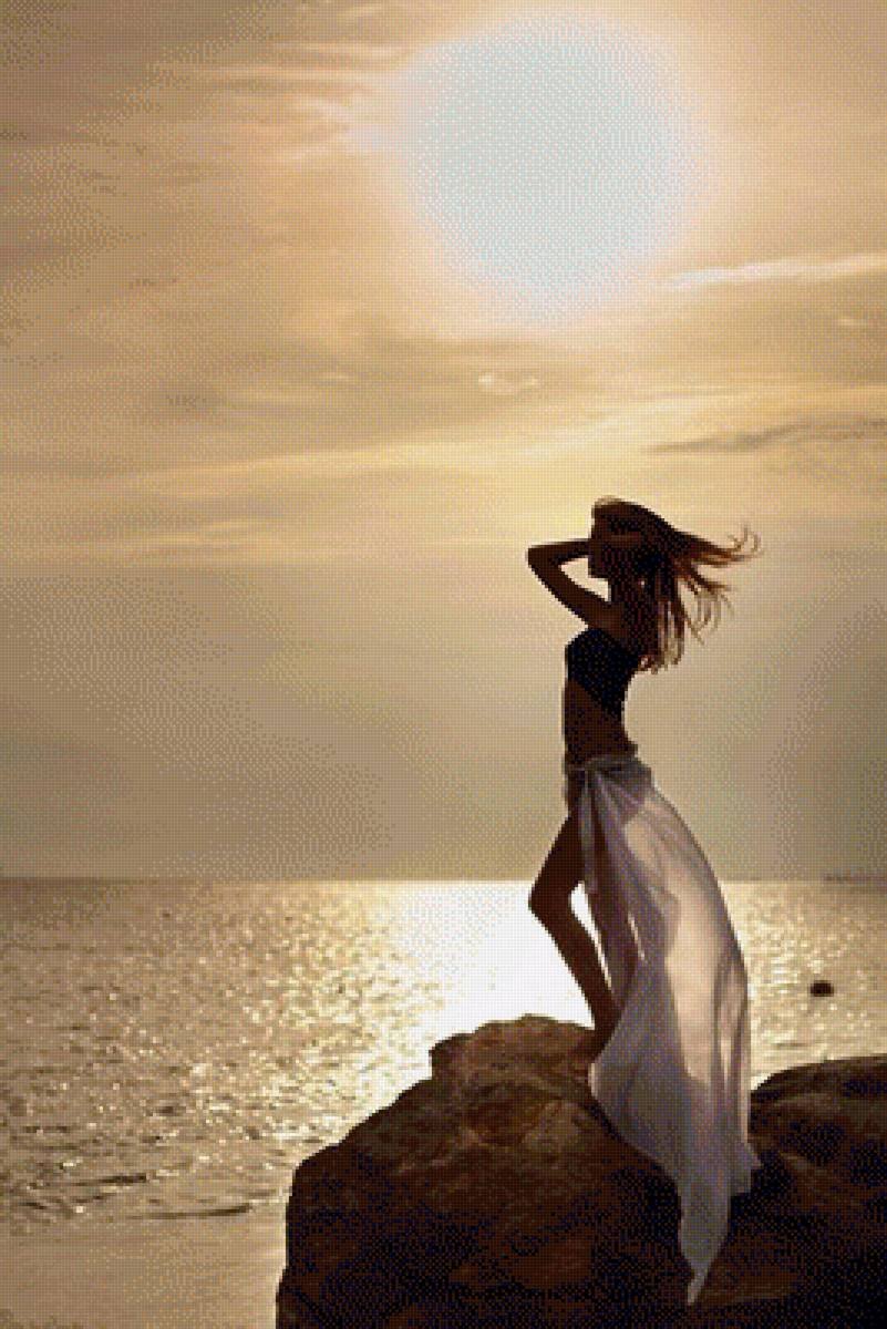 Девушка на рассвете у моря