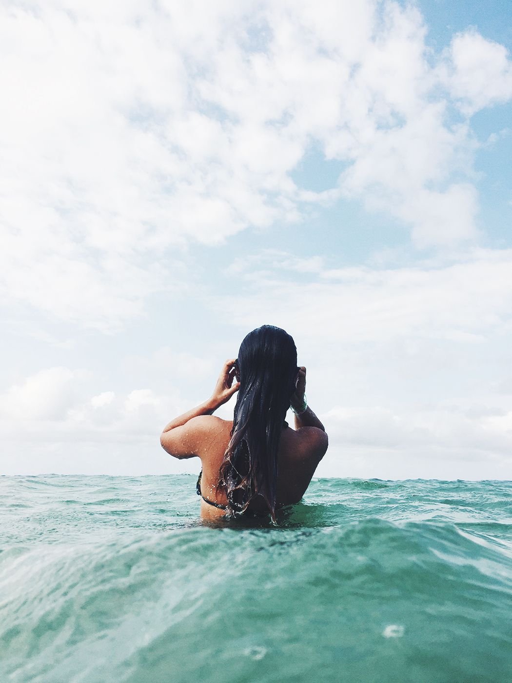 Девушка в воде со спины