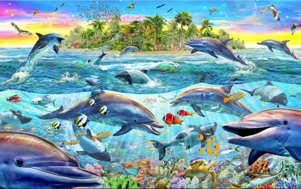 Подводный мир дельфины