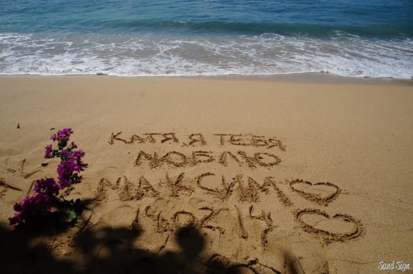 Люблю тебя надпись на песке