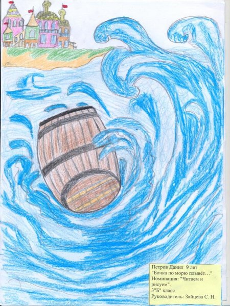 Сказка о царе Салтане рисунок бочка по морю плывет
