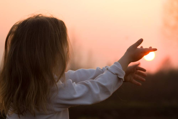 Девушка тянет руки к небу