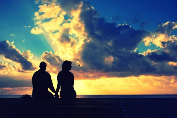 Силуэты влюбленных на закате