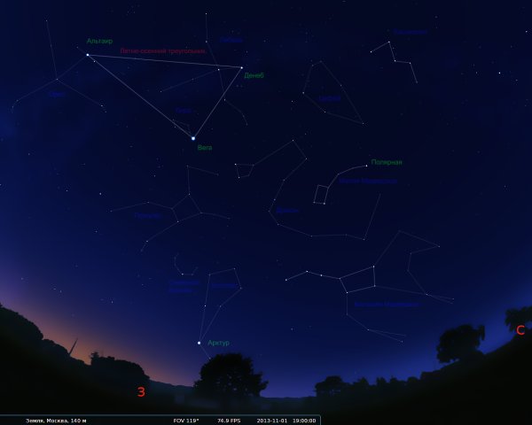 ![Звёздное небо с названиями созвездий и звезд]()