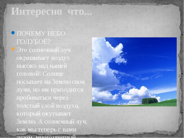 Небо прекрасного голубого цвета из-за явления, называемого рассеянием света. Когда солнечные лучи проходят через атмосферу Земли, они сталкиваются с молекулами воздуха и другими частицами. При этом коротковолновые лучи, отвечающие за синий и фиолетовый цвета, рассеиваются и отклоняются в разные стороны, создавая нам видимость голубого неба. Таким образом, благодаря физическим процессам, мы можем наслаждаться этой удивительной красотой каждый день.