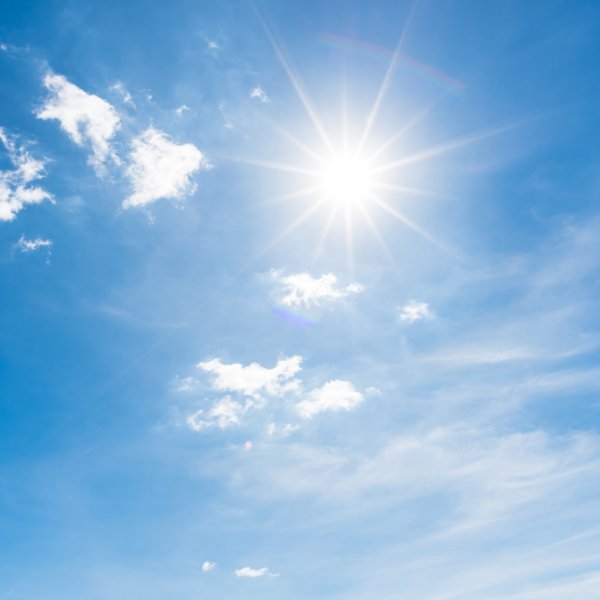 ![Голубое небо с облаками и солнцем]()