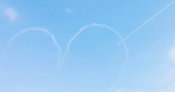 Самолеты в небе рисуют сердечки