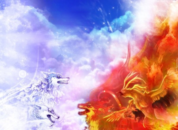 ![Элементы стихии огонь, вода, воздух и земля.]()