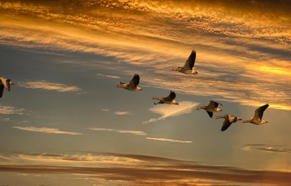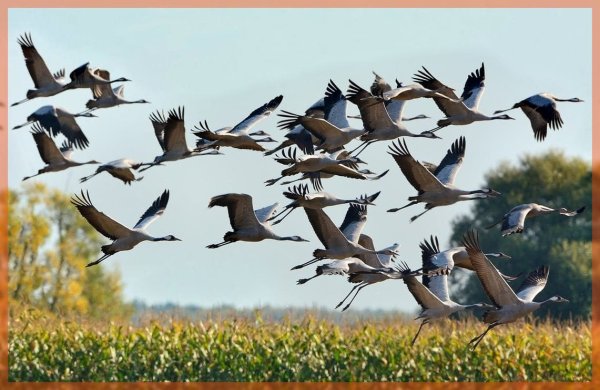 На картинке журавли летят в небе, создавая красивое и гармоничное зрелище. Их изящные формы и плавные движения напоминают о свободном полете и стремлении к высотам. Этот образ символизирует легкость, красоту и гармонию, придающие картине особую атмосферу нежности и возвышенности. Просматривая эту картинку, можно почувствовать вдохновение и спокойствие, а также увидеть величие и красоту мира природы.