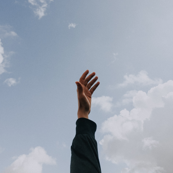 Человек тянет руку к небу