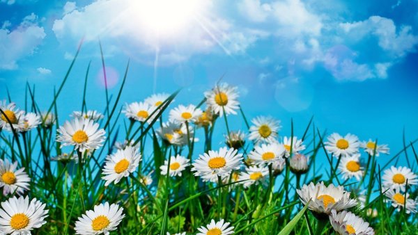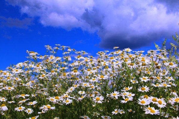 Прекрасные и нежные ромашки на фоне ясного голубого неба создают умиротворенное и свежее впечатление. Их яркие белые лепестки контрастируют с ярким синим небом, придавая картине особую красоту и легкость. Эта композиция наполнена теплом и светом, что делает ее идеальной для отдыха и релаксации. Ромашки на фоне голубого неба символизируют спокойствие, чистоту и гармонию с природой, будоражащую воображение и наполняющую сердце радостью.