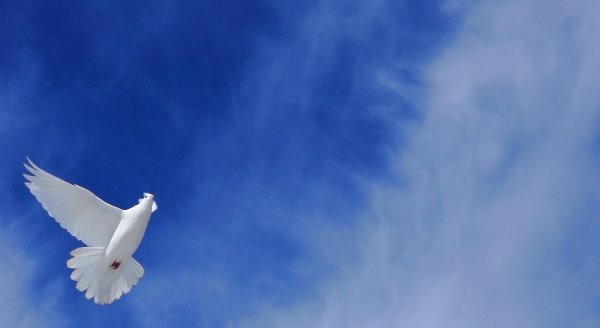 ![Белые голуби в небе]()