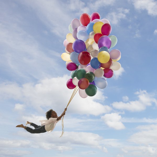 Девочка летит на воздушных шарах