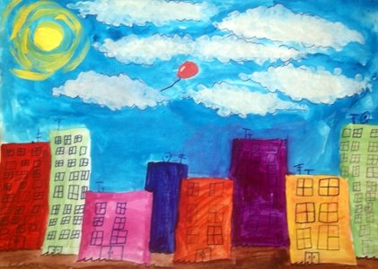 Красный шарик в синем небе рисунок
