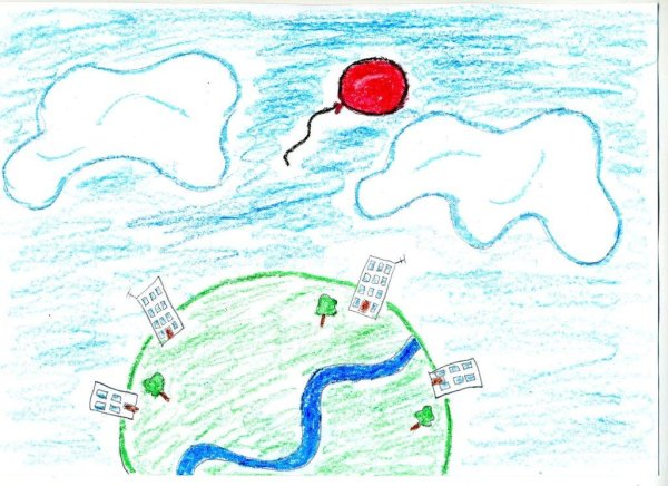 Красный шарик в синем небе рисунок к рассказу