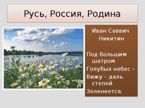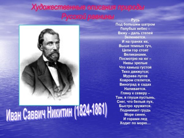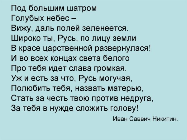 Под большим шатром голубых небес вижу даль степей Русь Иван Никитин