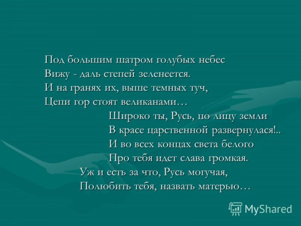 Стих под большим шатром голубых небес вижу даль степей Зеленеется