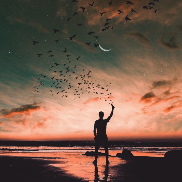 Птицы в небе и человек