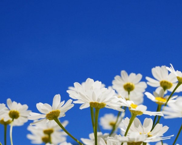 Ромашки на фоне голубого неба