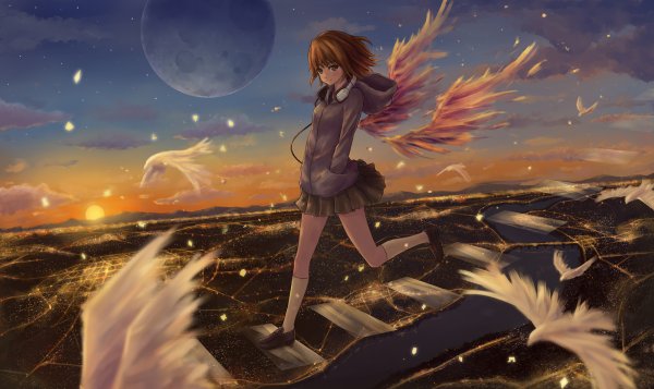 Аниме девушка в небе
