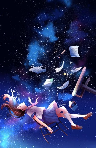 Аниме девушка парит